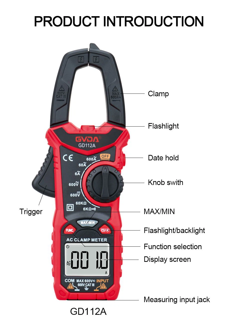 GVDA Clamp Meter adalah multimeter nilai efektif sejati yang cerdas, Identifikasi cerdas dan fungsi manual terintegrasi, yang dapat mengukur tegangan AC dan DC, arus AC dan DC, resistansi, kapasitansi, kontinuitas, dioda, NCV, dll.; Ini adalah pilihan terbaik untuk tukang listrik profesional, insinyur, penggemar elektronik atau penggunaan keluarga.